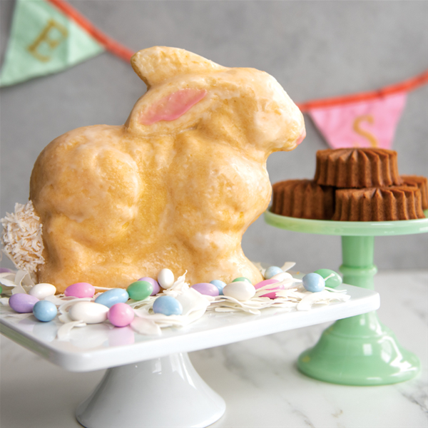- Two-piece mold creates a freestanding cake that’s easy to decorate