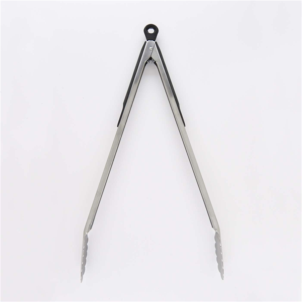 A good, sturdy pair of tongs are the cornerstone of an active kitchen. With brushed stainless steel construction, our durable 16-inch Locking Tongs feature scalloped edges for a secure grip whether you're lifting asparagus spears or turning porterhouse steaks. Soft, non-slip handles absorb pressure so you can grip, toss, turn and flip fatigue-free. The Tongs lock closed for compact storage hanging or in a drawer. Great addition to any BBQ or Grilling tool kit.